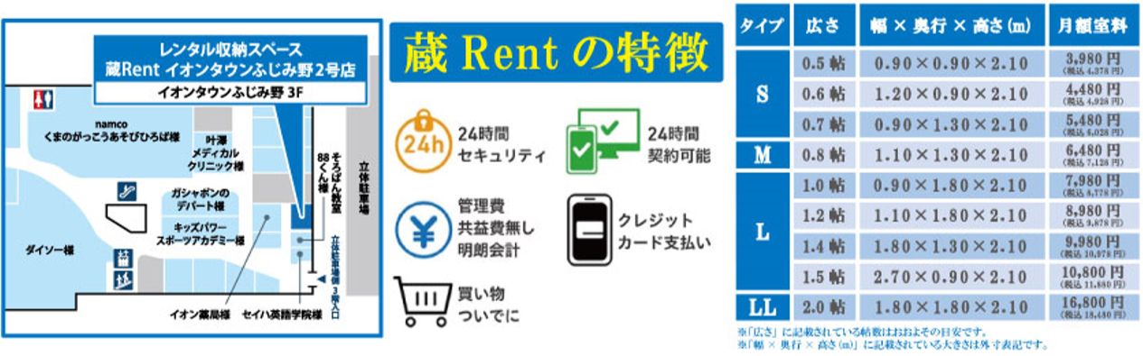 ■レンタル収納スペース「蔵Rentイオンタウンふじみ野2号店」では