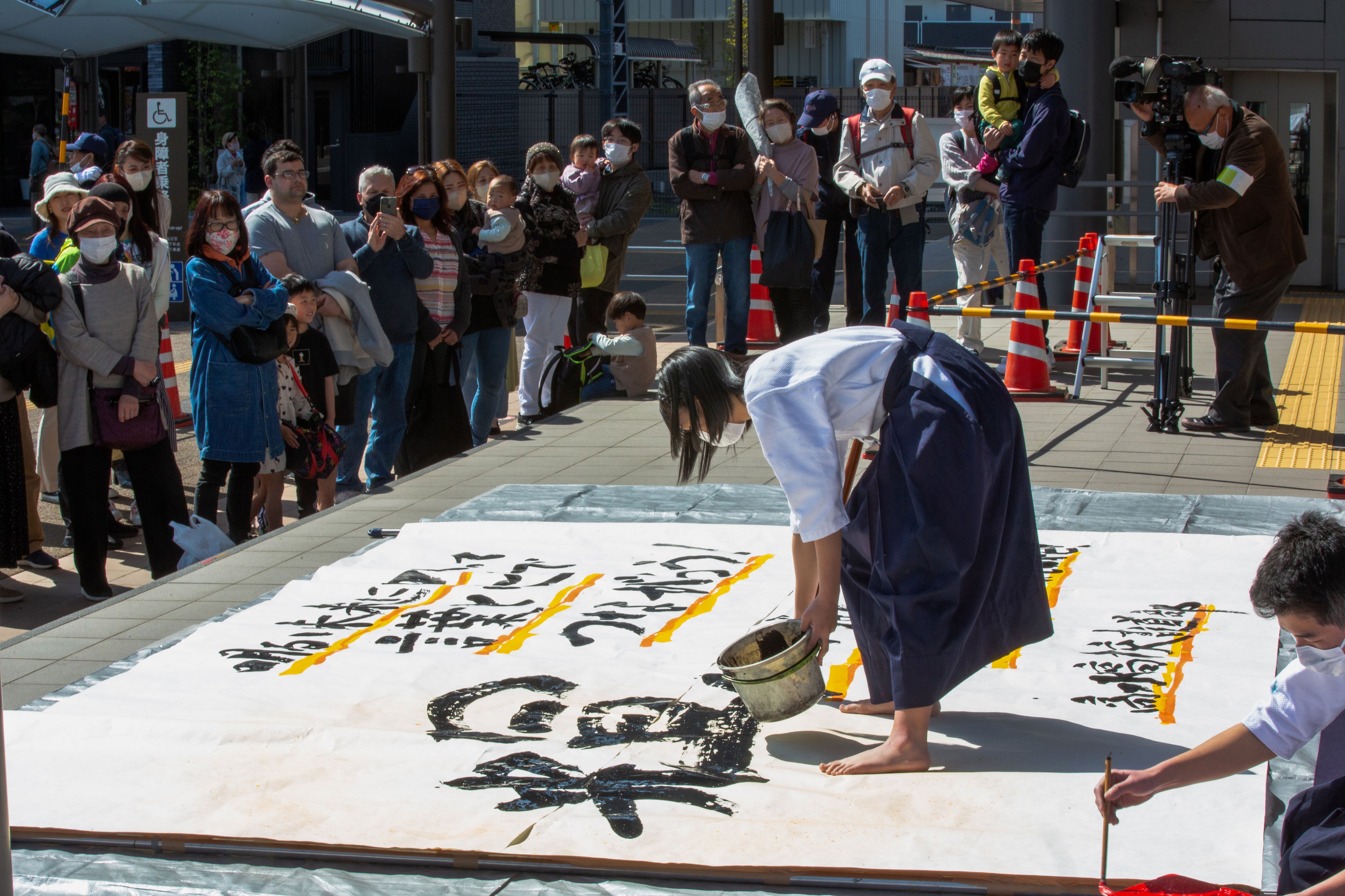 午前のプログラムとして、人気英語インフルエンサーのMC TAKAを迎え、「英語を話せるようになるための秘訣」について質疑応答を含めた講演会を開催すると共に、岩国市内の高水高等校 書道部による、観覧者参加型の書道パフォーマンスを行いました。