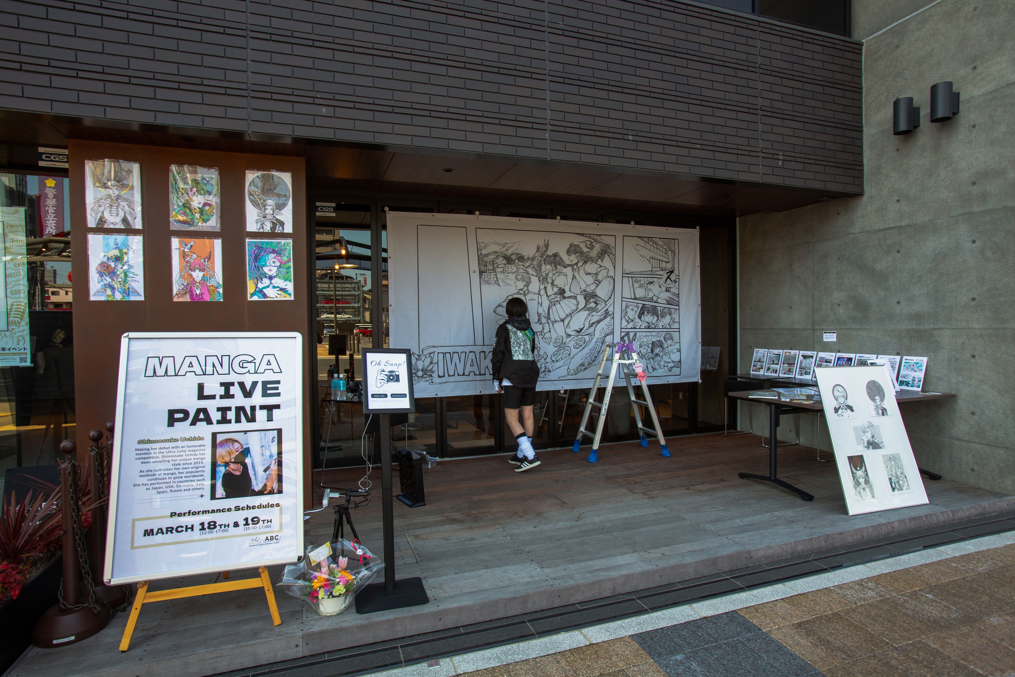 前日の18日から2日間に渡り、漫画家の内田慎之介による「マンガライブペイント」も開催。3mを超えるターポリンに岩国の未来が描かれる大迫力のパフォーマンスとなりました。