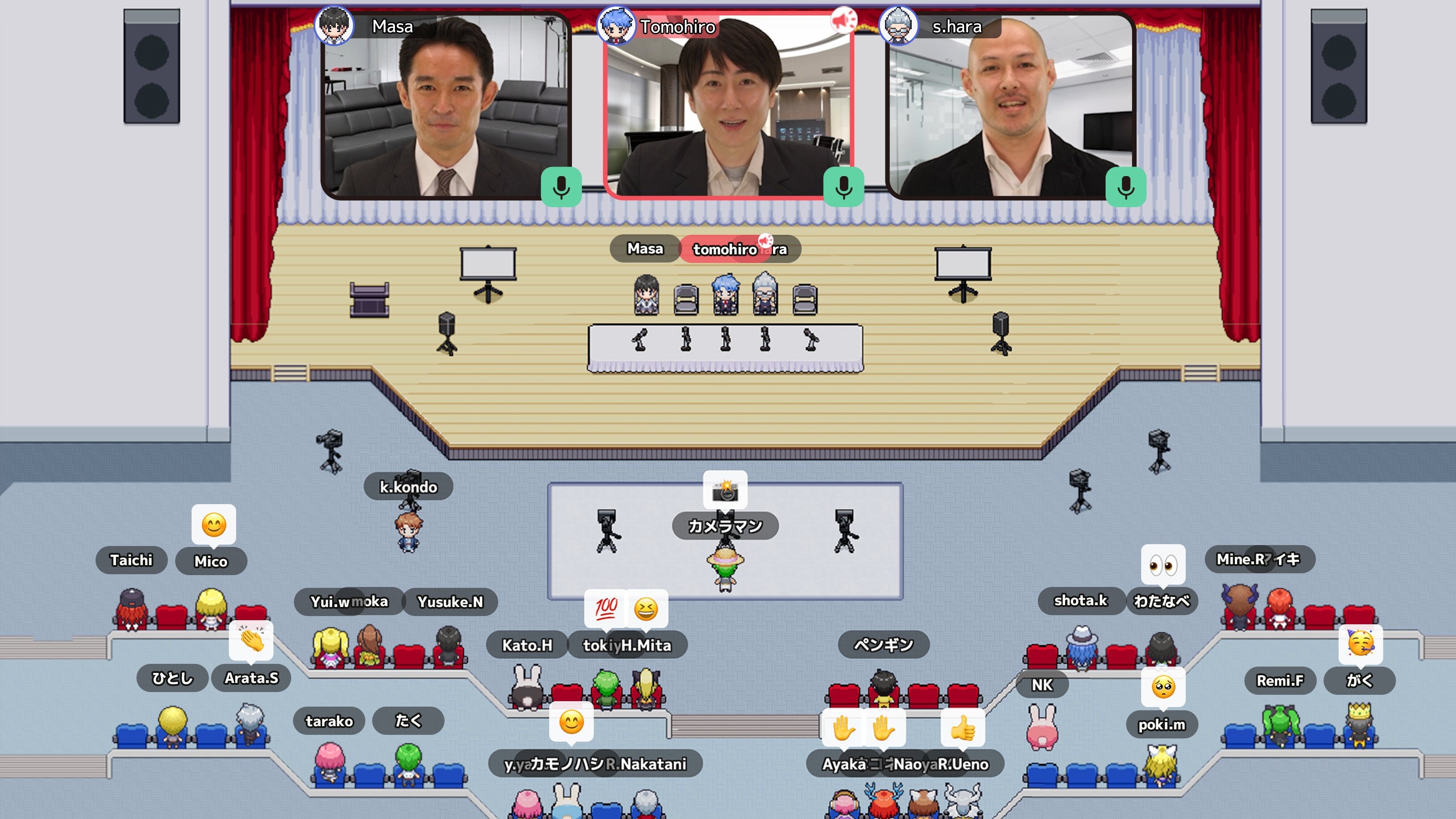 また、たくさんのアバターが一堂に会するので、従来のオンラインセミナーと比べてより会場の一体感を生み出すことができます。