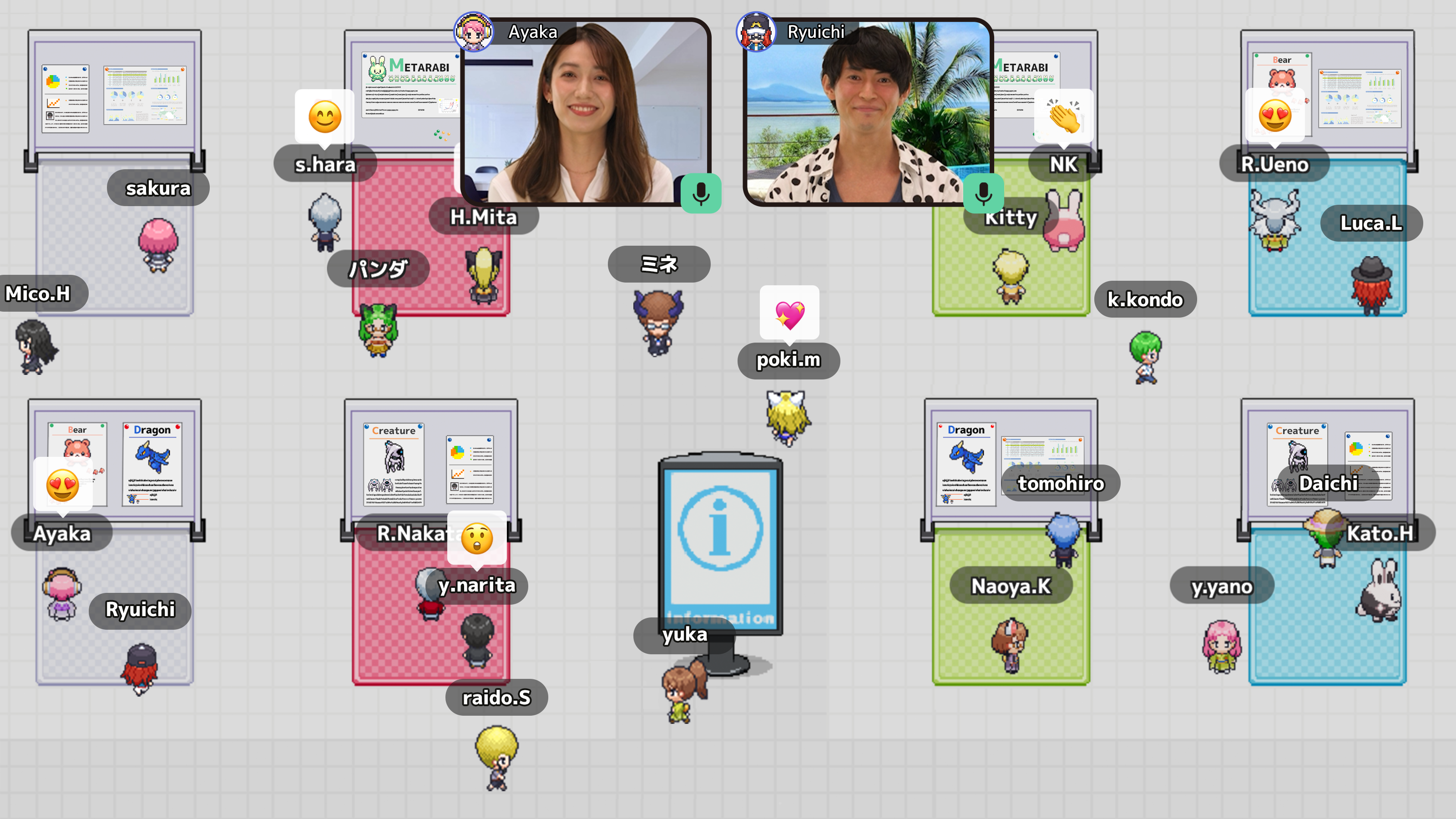 そのため大人数での会話はもちろん、特定の人と2人きりで話したり、誰かの会話に混ざったりなど、実際のイベント会場のようなリアルな交流を楽しむことができます。