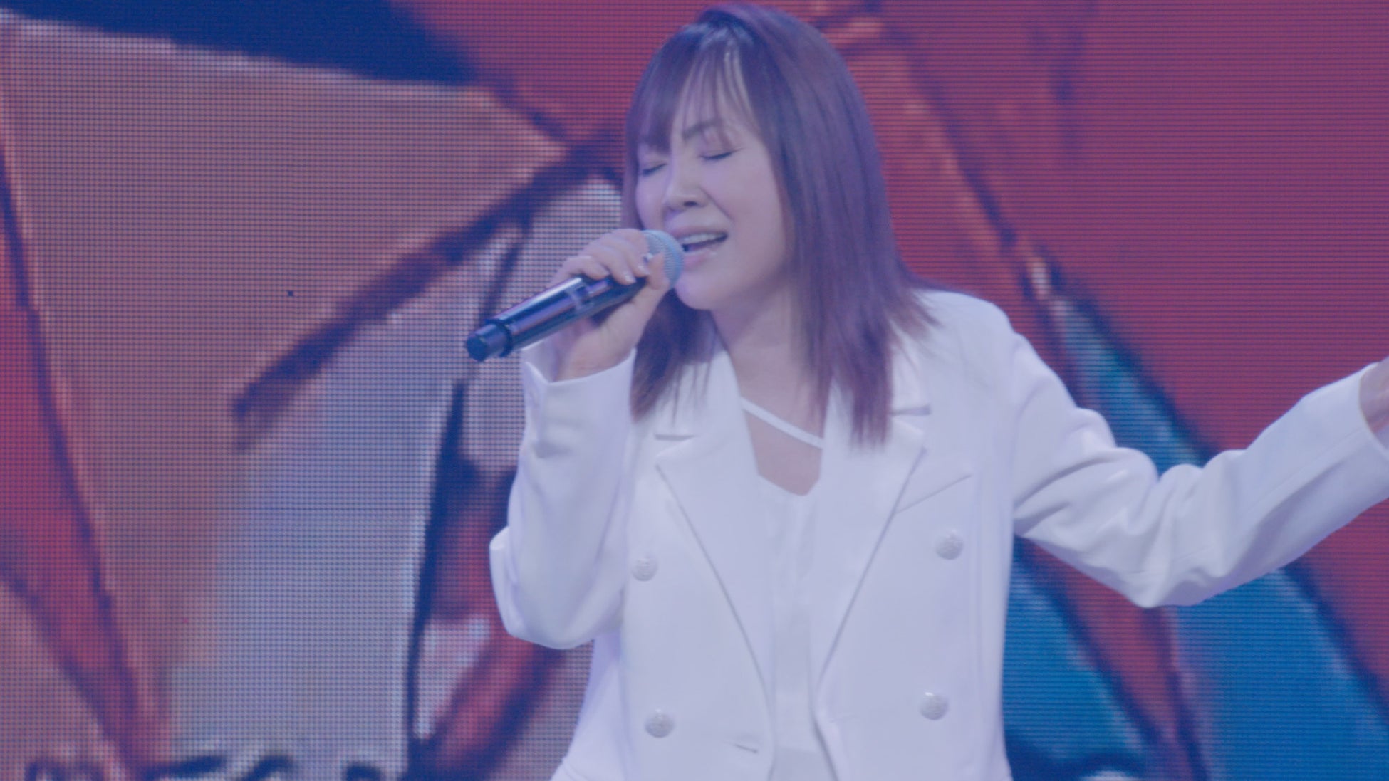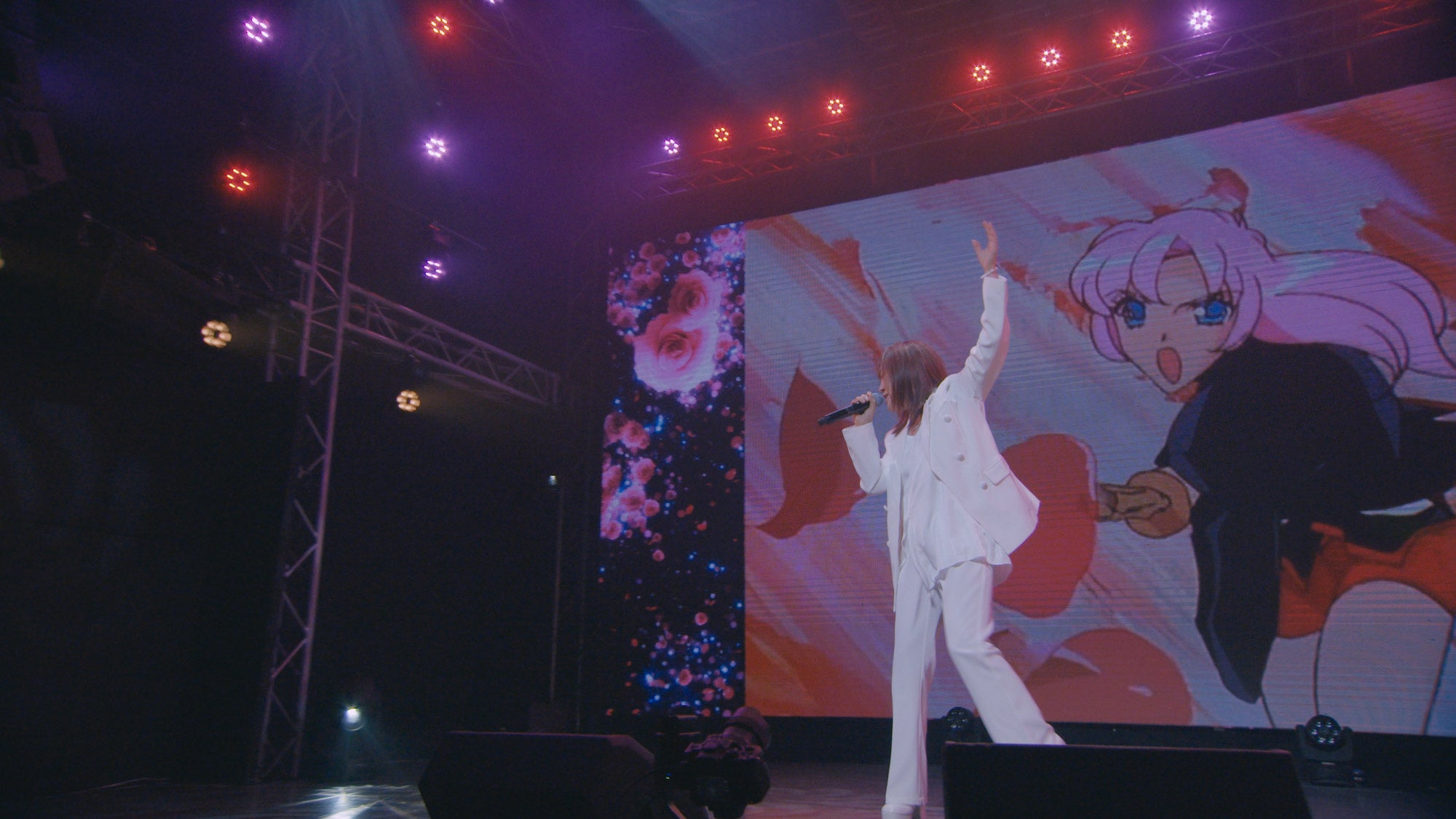 「歌で言っていることに嘘を付きたくない」と言う奥井雅美さんは、そう考えるきっかけとなった曲「輪舞-revolution」をTVアニメ『少女革命ウテナ』の映像を背景に歌唱。