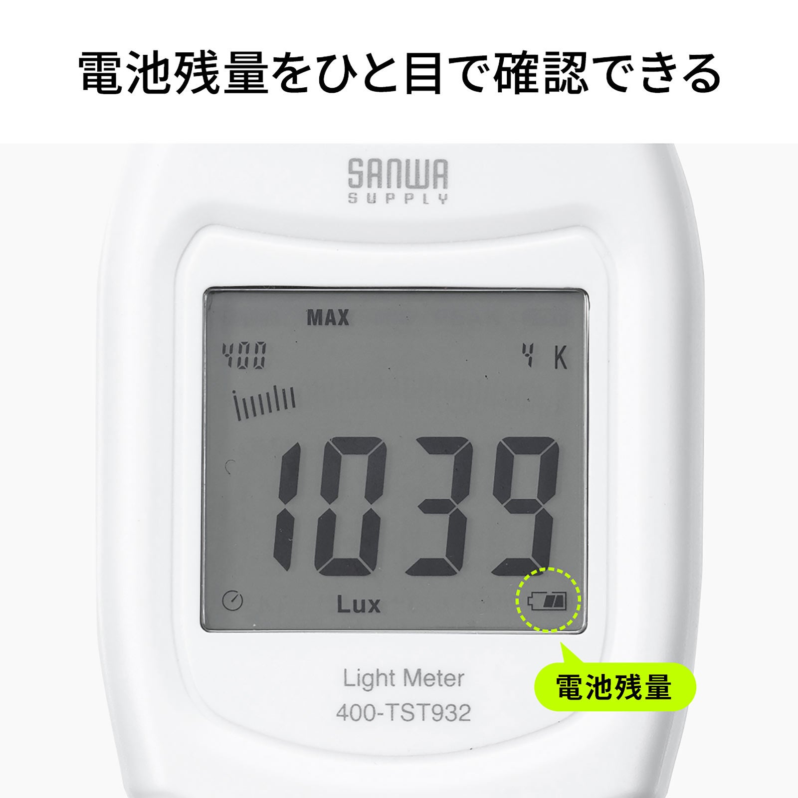 本製品は、簡単に操作できるデジタル表示とアナログバー表示可能な照度測定器です。