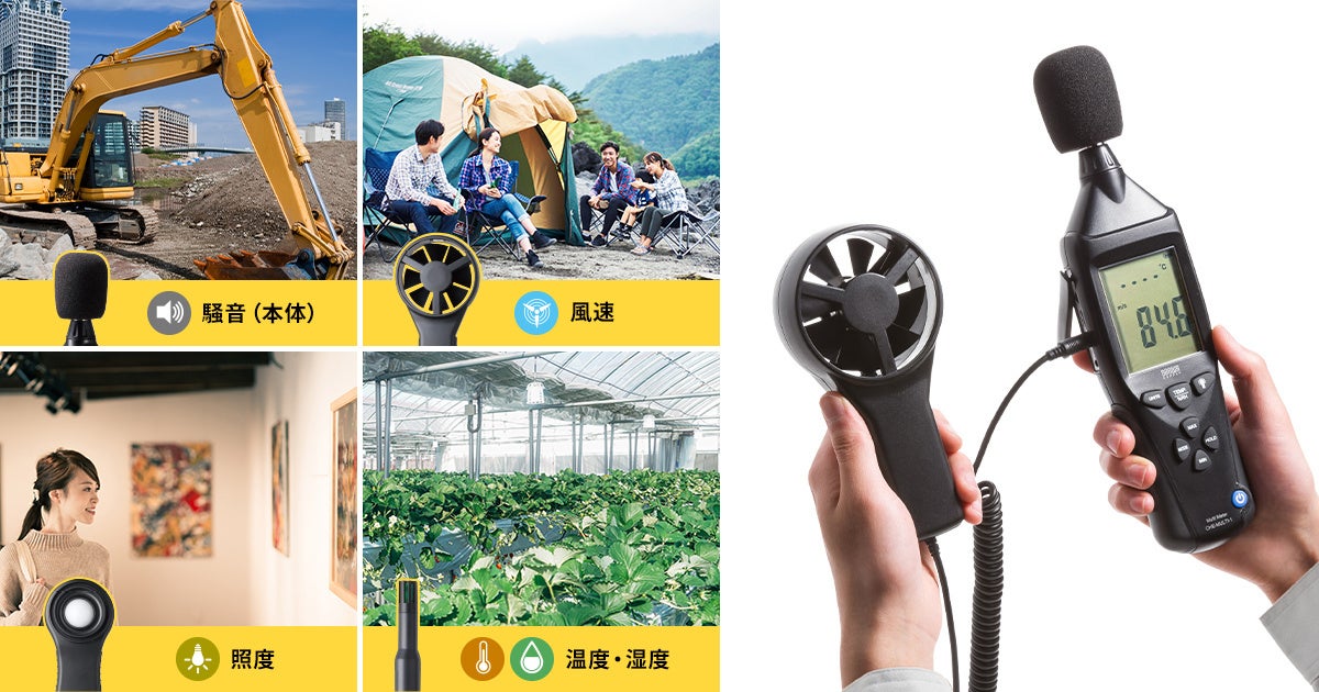 騒音や風速から照度、温度、湿度まで測定可能な、1台5役の多機能測定器を発売