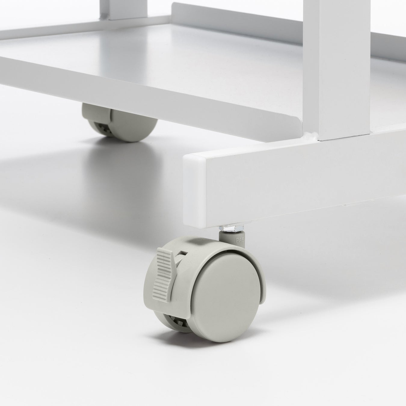 ちょっとした移動に便利なキャスター仕様です。前側のキャスターにはストッパーが付いているので、設置時は動かないように固定できます。