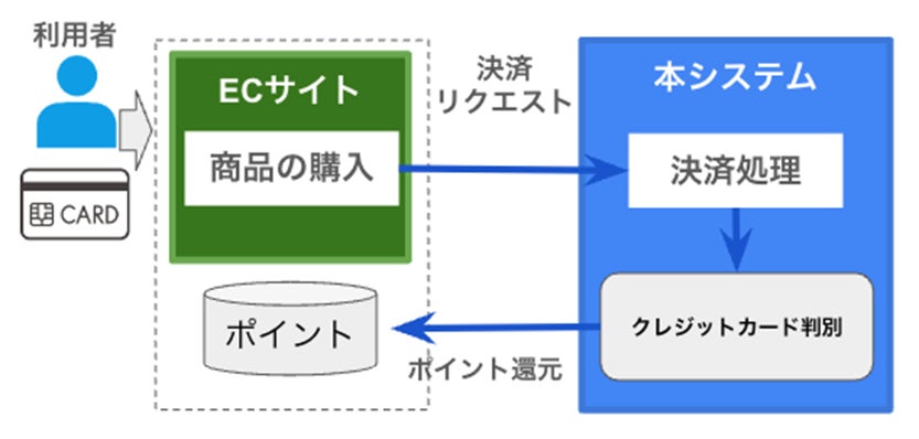 従来のクレジットカード会社によるポイント付与は、ユーザーが利用したサービス側から提供される情報をもとにユーザーを判別しており、このシステムの場合、決済時に即時でユーザーに対してポイント付与が行えず、月に1回などまとめて同じ還元率でポイントを付与することしかできませんでした。