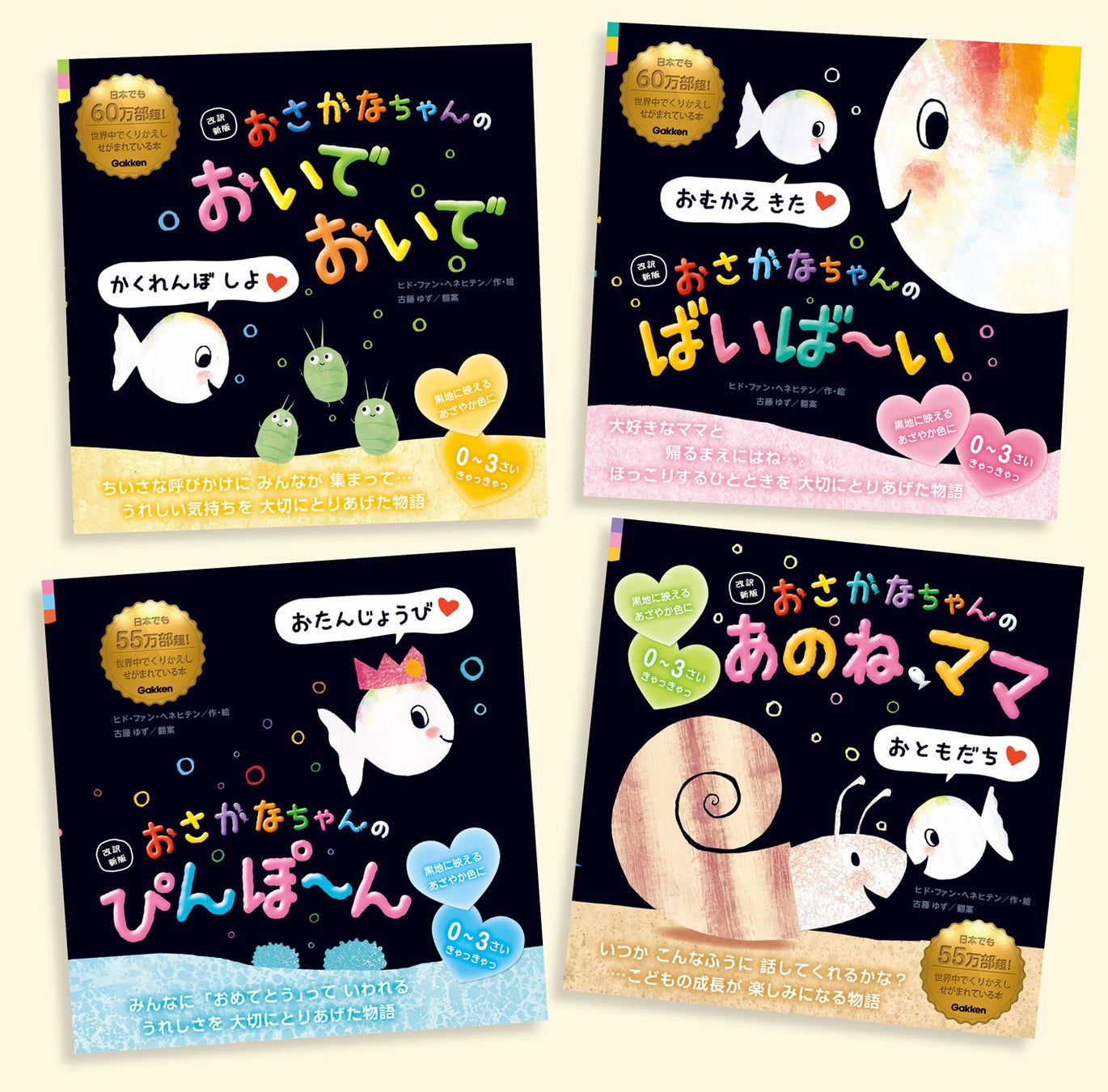 2014年、日本語版の誕生直後から、0歳~3、4歳児ママパパの口コミで広がって大好評を博し、次々に8冊を刊行。有名人の動画やSNS、著書などにも、数多くとりあげられてきました。