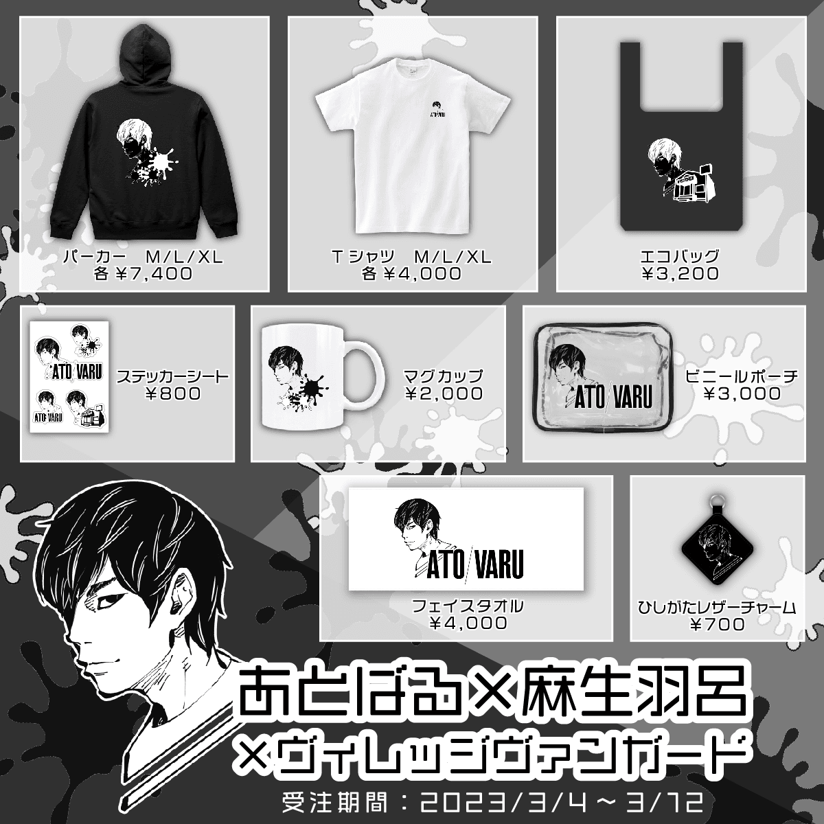 2023年3月4日(水)より、よしもとゲーミング所属のプロゲーマー「あとばる」のお誕生日を記念して、ヴィレヴァン限定コラボグッズ発売決定!デザインはなんと、漫画家「麻生羽呂」先生の描きおろし!!!かっちょい~~~!!めでたくてイカすアイテムをゲットせよッ!!期間限定のオンライン受注販売のみになりますのでお見逃しなく~!