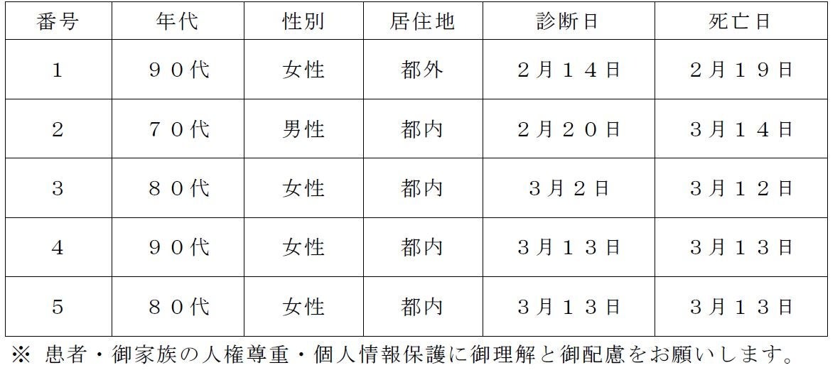 都内で新型コロナウイルスに感染した方が死亡されましたのでお知らせします。