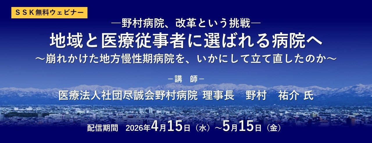 「【無料ウェビナー】地域と医療従事者に選ばれる病院へ」と題して、医療法人社団尽誠会野村病院 理事長 野村 祐介氏によるセミナーを2026年4月15日(水)に開催!!