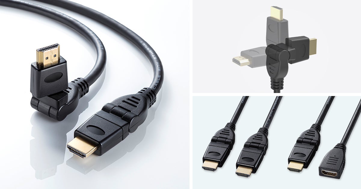コネクタが回転する3Dコネクタでスッキリ配線できる、ハイスピードHDMIケーブルを発売