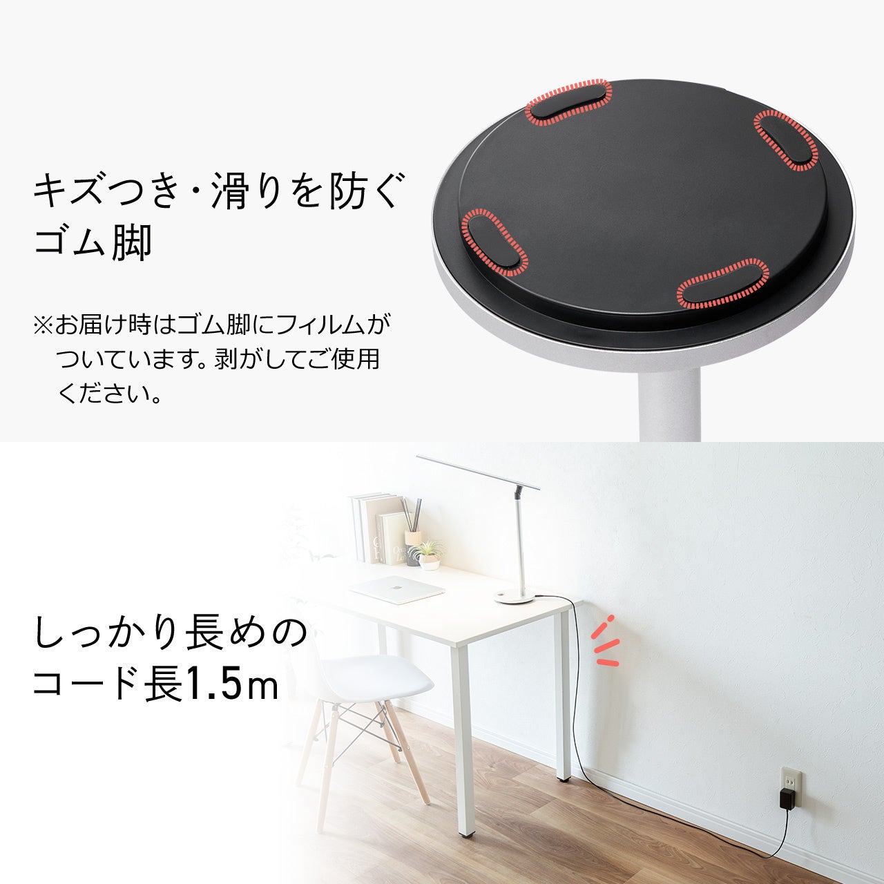 底面には傷や滑りを防ぐゴム脚を採用しています。