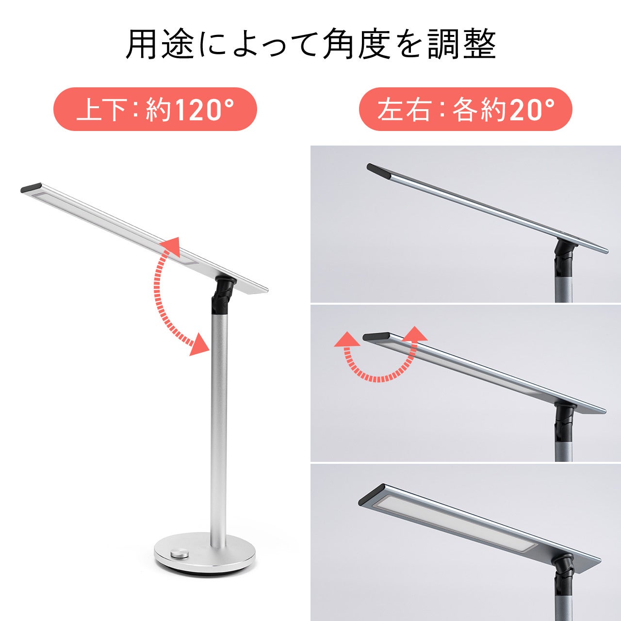 上下に約120度、左右に約20度の角度調整が可能で、好みの角度に調整が可能です。