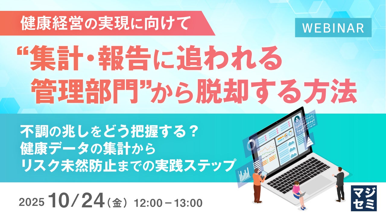 マジセミ株式会社は「【健康経営の実現に向けて】“集計・報告に追われる管理部門”から脱却する方法」というテーマのウェビナーを開催します。