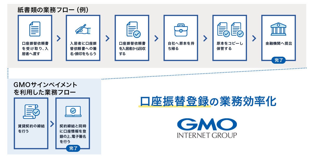 契約・決済を一元化する「GMOサインペイメント」賃貸契約時の家賃支払いの51%で利用する「口座振替」に対応【GMOグローバルサイン・HD】
