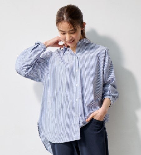 体にストレスを感じにくいシルエットと着心地の良さの両立を実現したアイテムです。また、アイロン掛けが簡単で、お手入れ簡単です。タイパとコスパに優れた楽ちんベーシックシャツです。