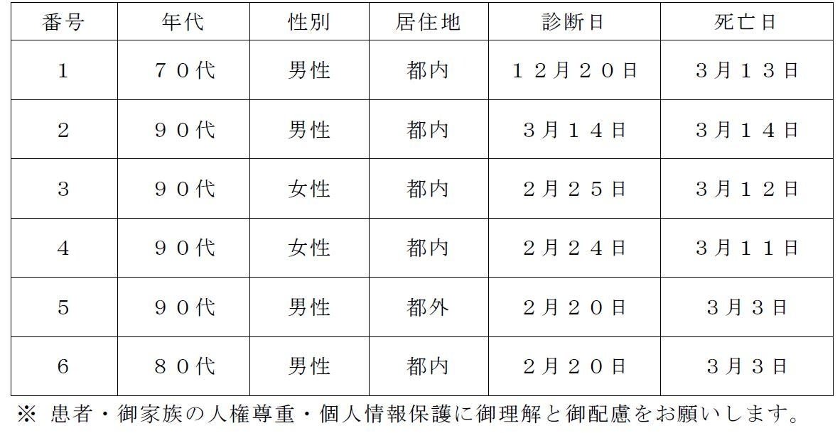都内で新型コロナウイルスに感染した方が死亡されましたのでお知らせします。