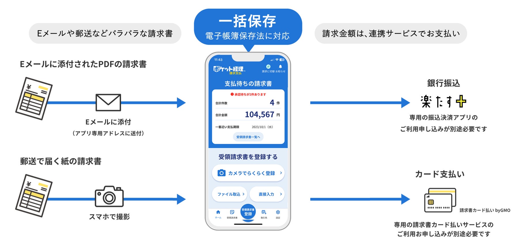 請求書の電子データ化からカード支払いまでがスマホのみで可能に