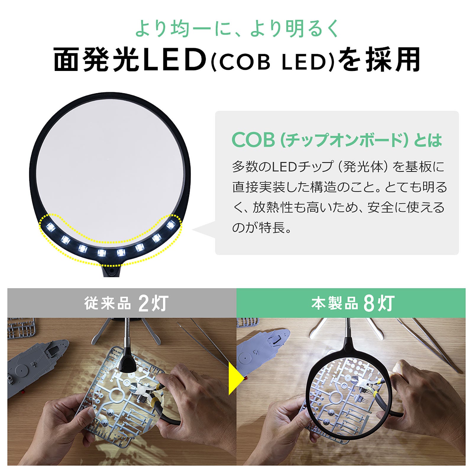 自立できるスタンドタイプで、両手が空くので作業しやすく細かい作業におすすめです。
