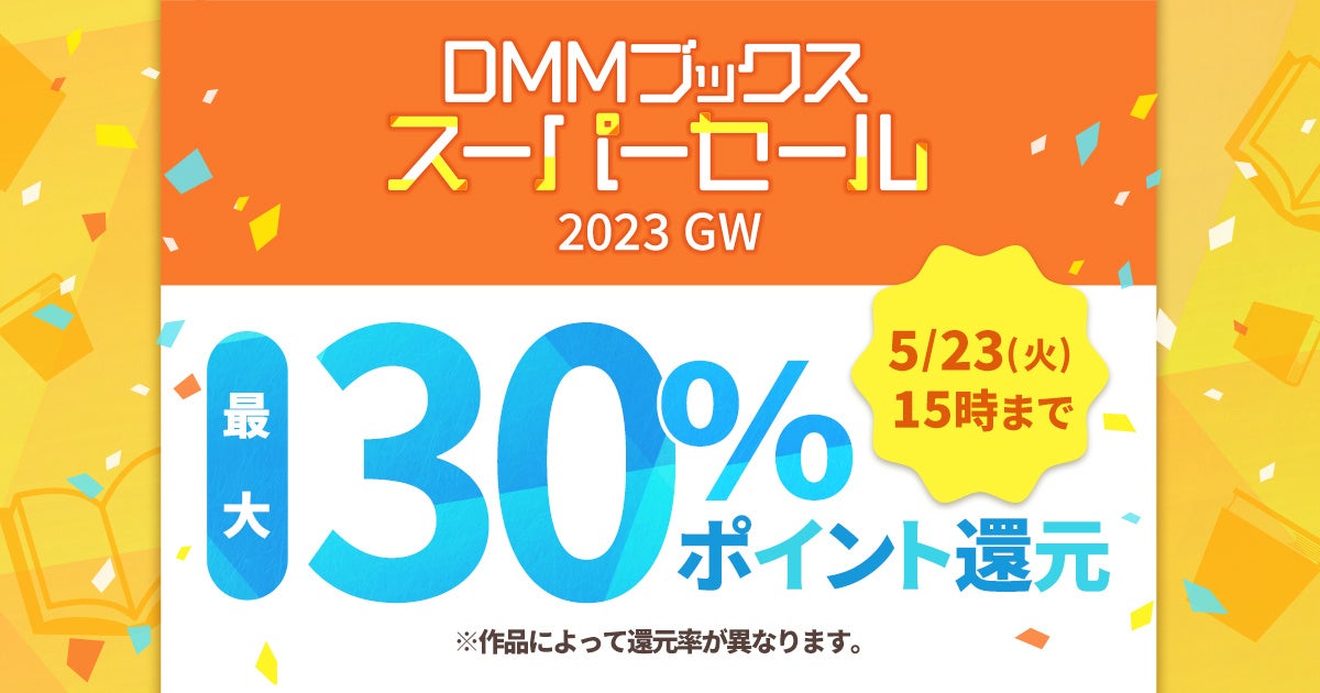 4月25日(火)17:00 から5月23日(火)14:59までの期間中、対象作品が最大30%ポイント還元となります。いつでもお得な「DMMブックス」で最高の読書体験をお楽しみください。