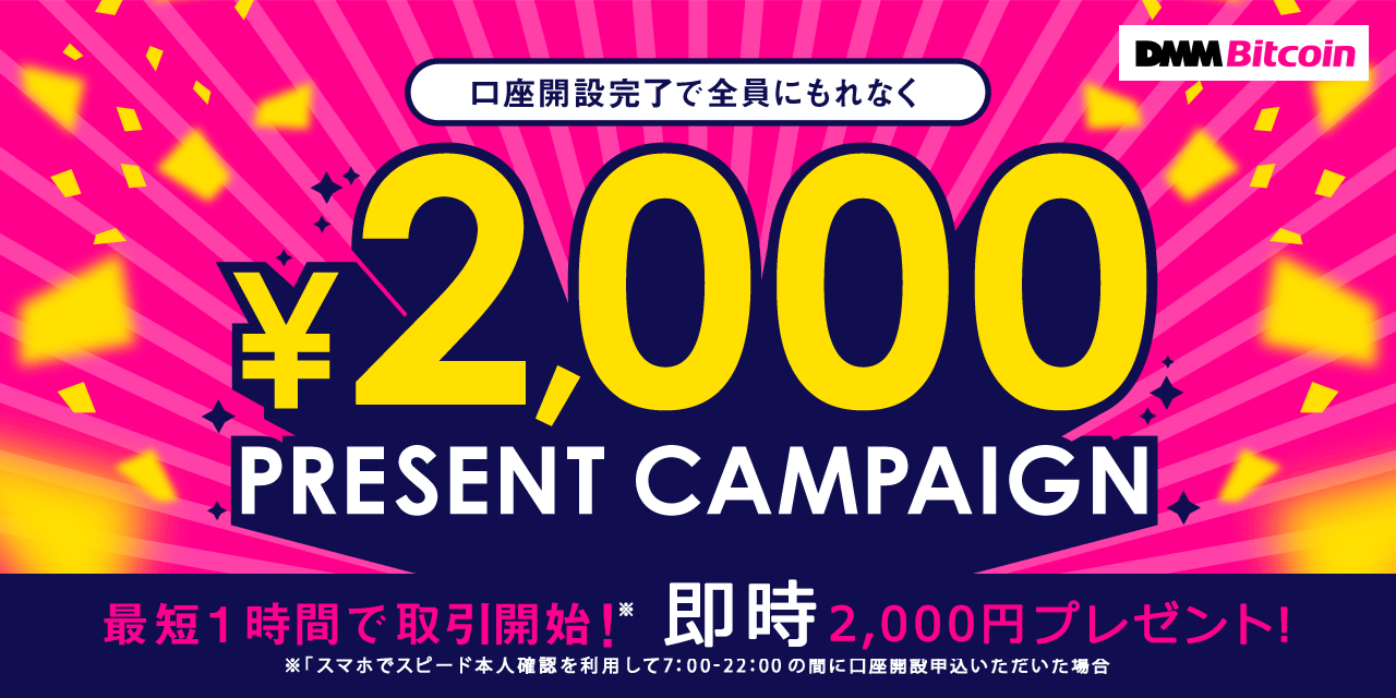 『新規口座開設完了で、全員にもれなく”即時”2,000円プレゼント!』キャンペーンも只今実施中です。