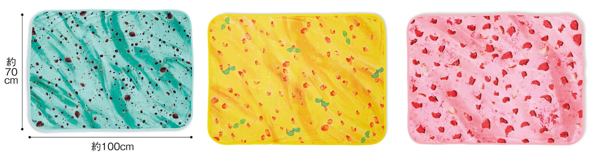 ジェラート屋さんの店頭でアイスをすくってもらうときのワクワク感をそのまま閉じ込めたようなブランケットです。ひんやり冷たい接触冷感素材で、見た目だけでなくジェラートのような冷たさを体感できます。