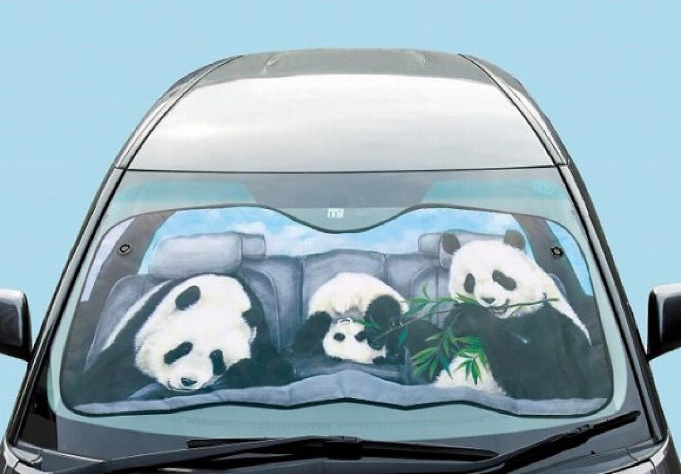 パンダが、車内でのんびりお留守番してくれているような姿が楽しめるサンシェードです。