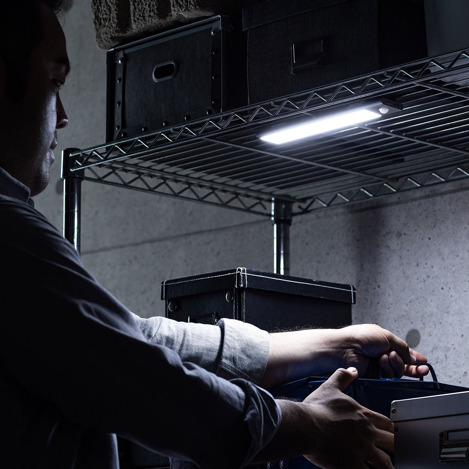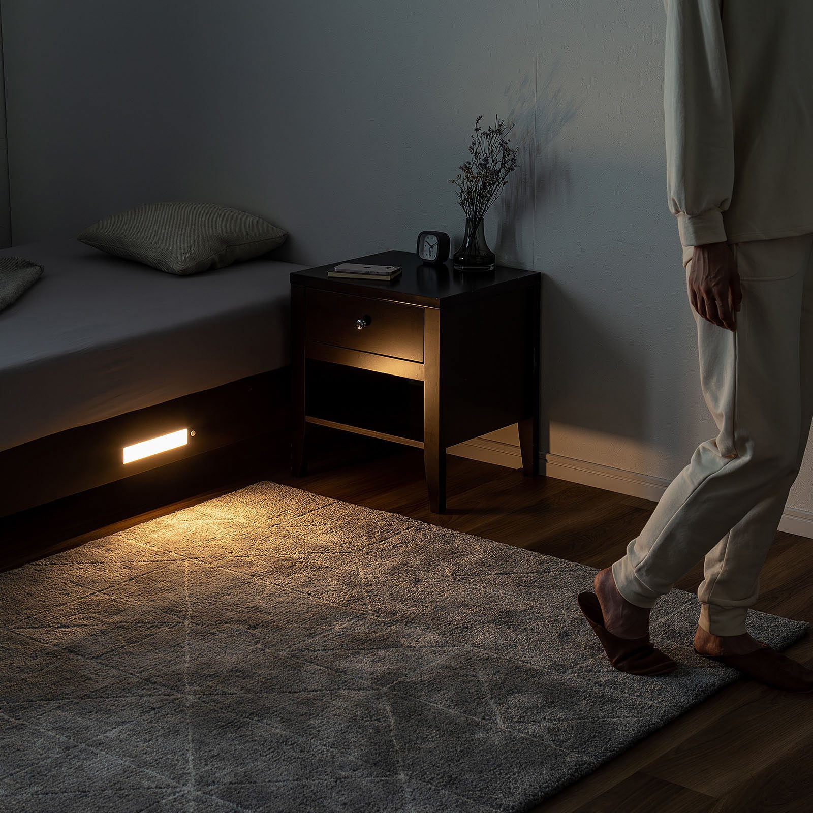 本製品は、人感センサーを搭載したLEDライトです。廊下、ベッドサイド、クローゼット、キッチンなどに設置して、薄暗い手元や足元を明るく照らせます。人の動きを感知すると自動的に点灯するため、電源スイッチを操作する手間がかかりません。動きを感知しない場合は約15~18秒後に消灯します。