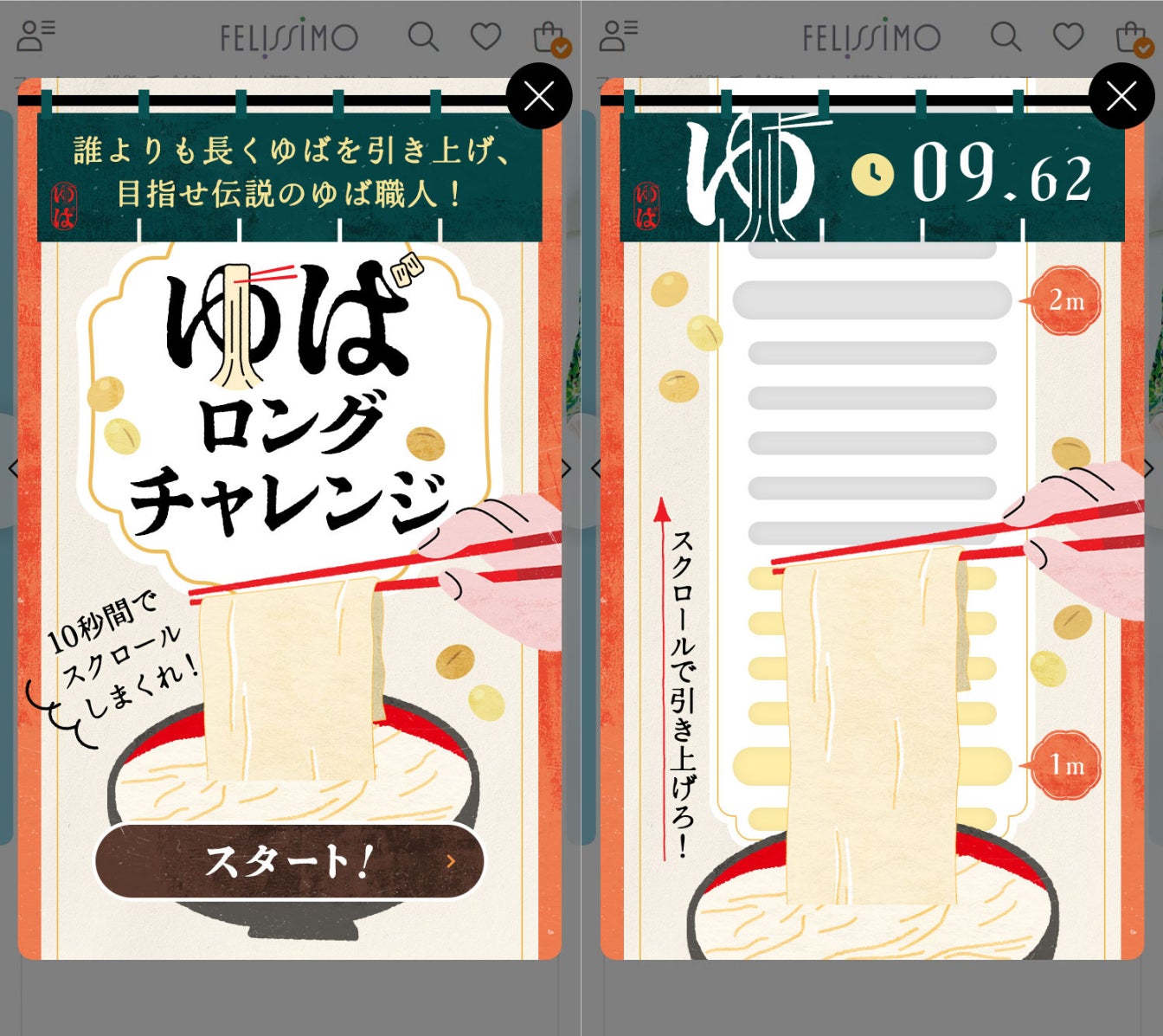 4月1日(水)のエイプリルフールより、フェリシモ公式WEBサイトのトップページにて、ゆばの引き上げを体験できる特設ゲーム「ゆばロングチャレンジ」を公開中。
