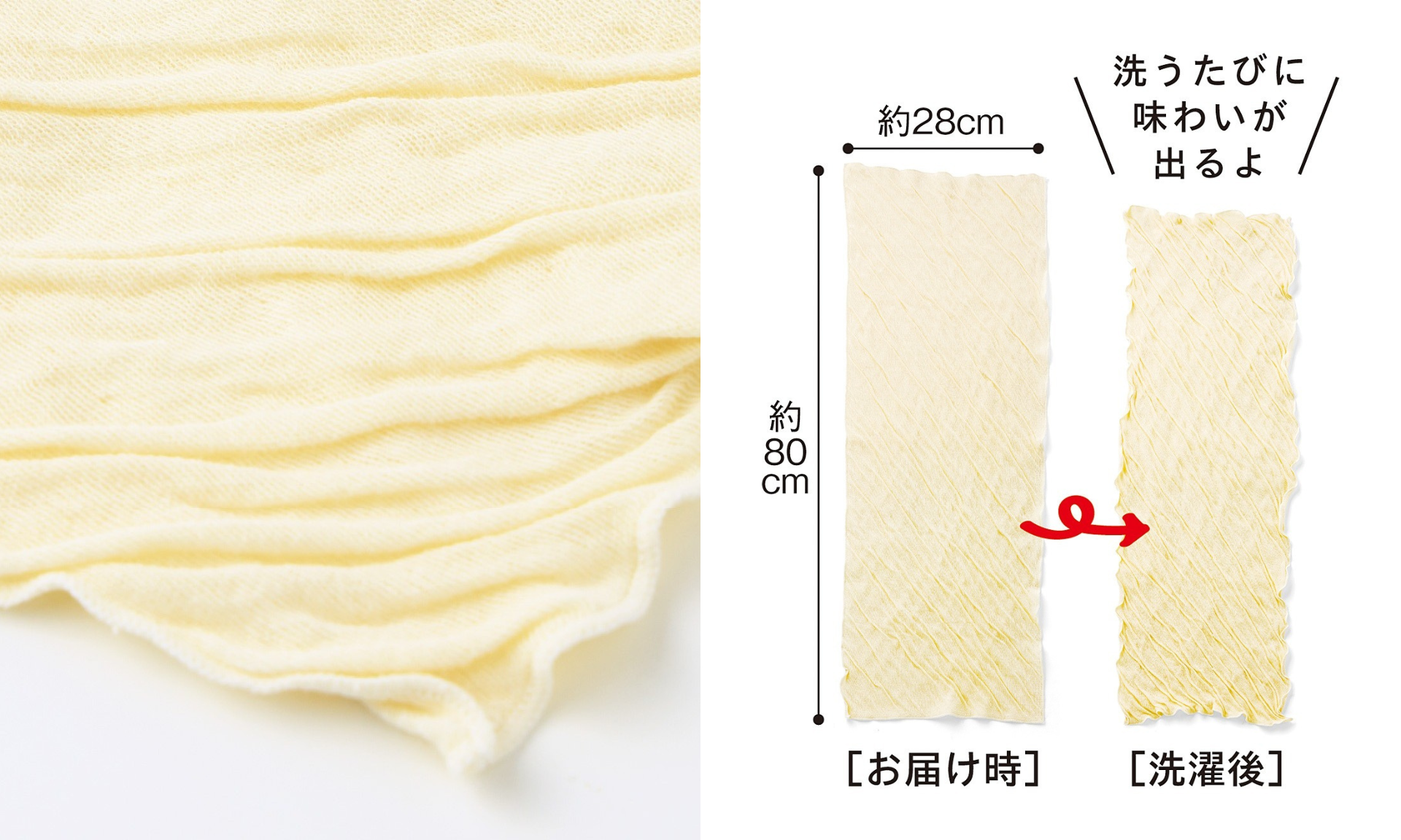 まるで本物のゆばのようなフェイスタオルです。ゆば特有のしわ感がほどこされていて、洗うたびにふんわりやわらかな肌ざわりを実感できます。