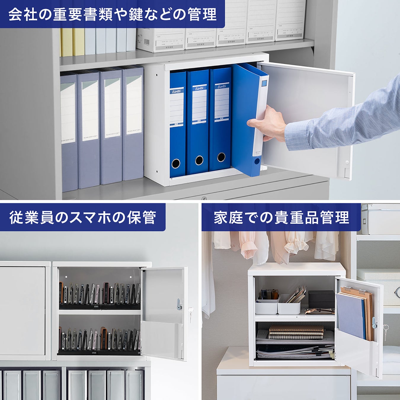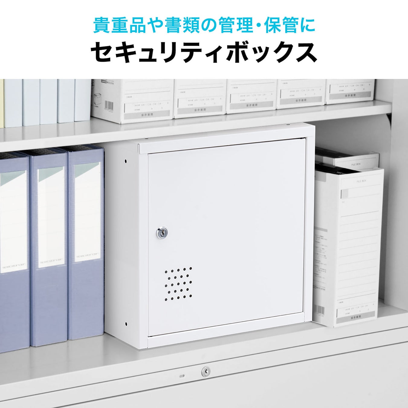 セキュリティボックス 小型 スチール製 鍵付き ブックトレー付き スタッキング可能 簡単組立 A4 書類 セキュリティワイヤー