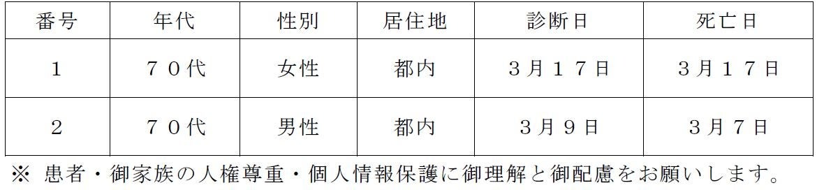 都内で新型コロナウイルスに感染した方が死亡されましたのでお知らせします。