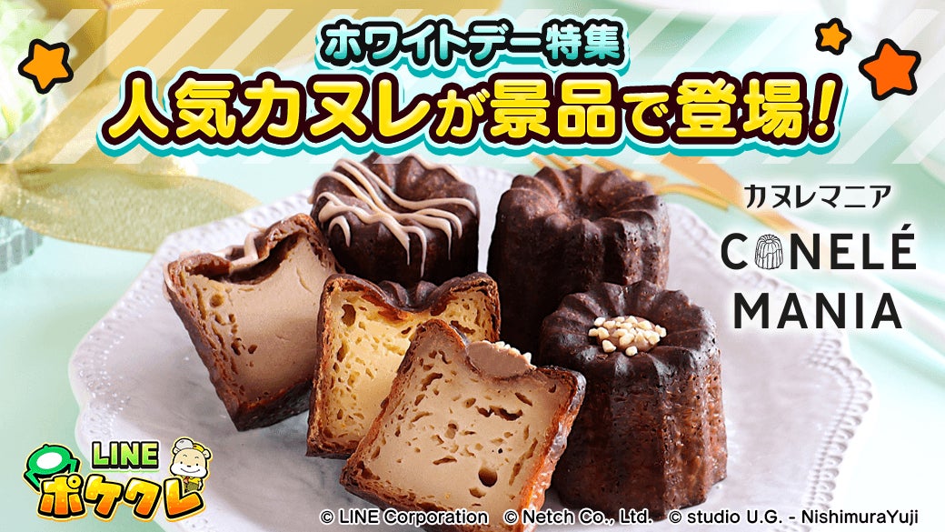 友だちといっしょに遊べる新感覚オンラインクレーンゲーム「LINE ポケクレ」にホワイトデー特集として、全国の選りすぐりのお店からこだわりのカヌレを集めた「カヌレマニア」の人気カヌレが景品に登場します。「カヌレマニア」のカヌレは数量限定景品です。