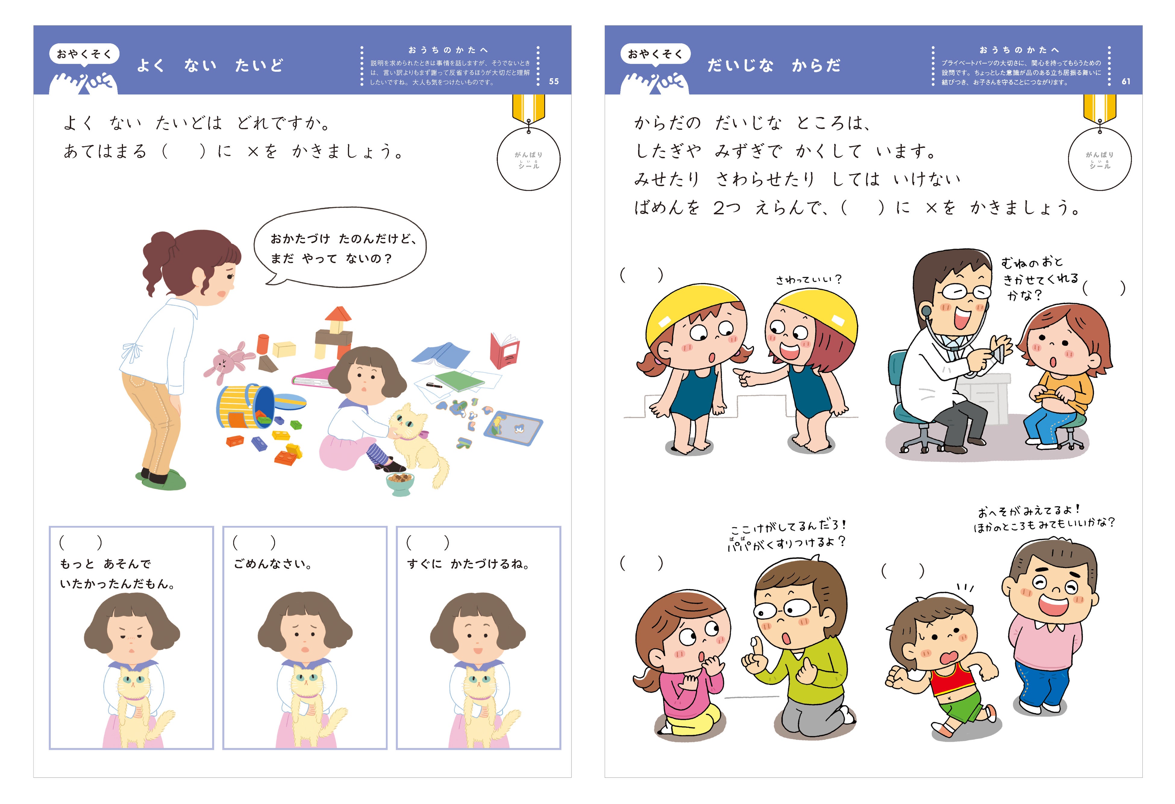 しかし教科としてまとまっていない分野のため、何をどう教えればよいか困っているご家庭も非常に多いようです。そこで大切なお子さんを守るべく、小学校入学前後に教えておきたい「おやくそく」を厳選したドリルが新登場! 一度は話し合いたい内容が盛りだくさんですので、お子さんとの会話のきっかけにしてみるのはいかがでしょうか?