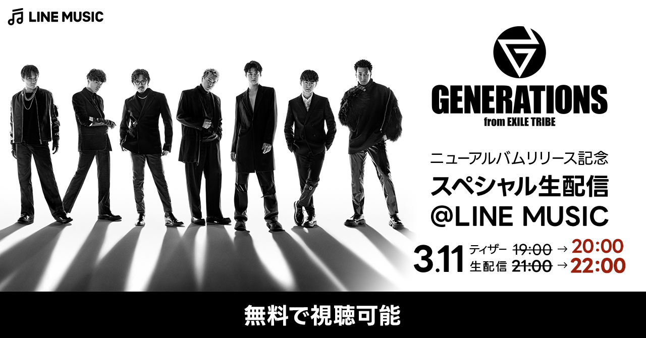 「GENERATIONS ニューアルバムリリース記念 スペシャル生配信@LINE MUSIC」3月11日(土)22時からLINE MUSICアプリで無料配信