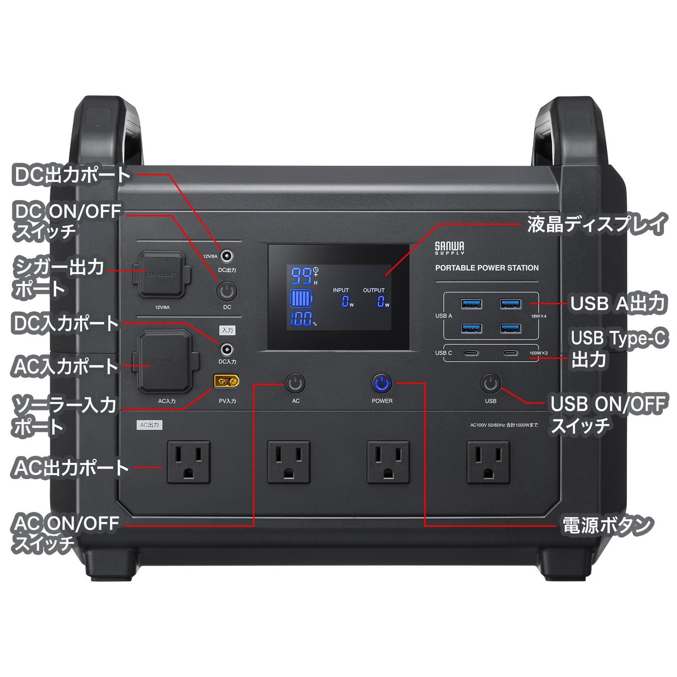 家庭用コンセントと同じ1500WまでAC出力が可能