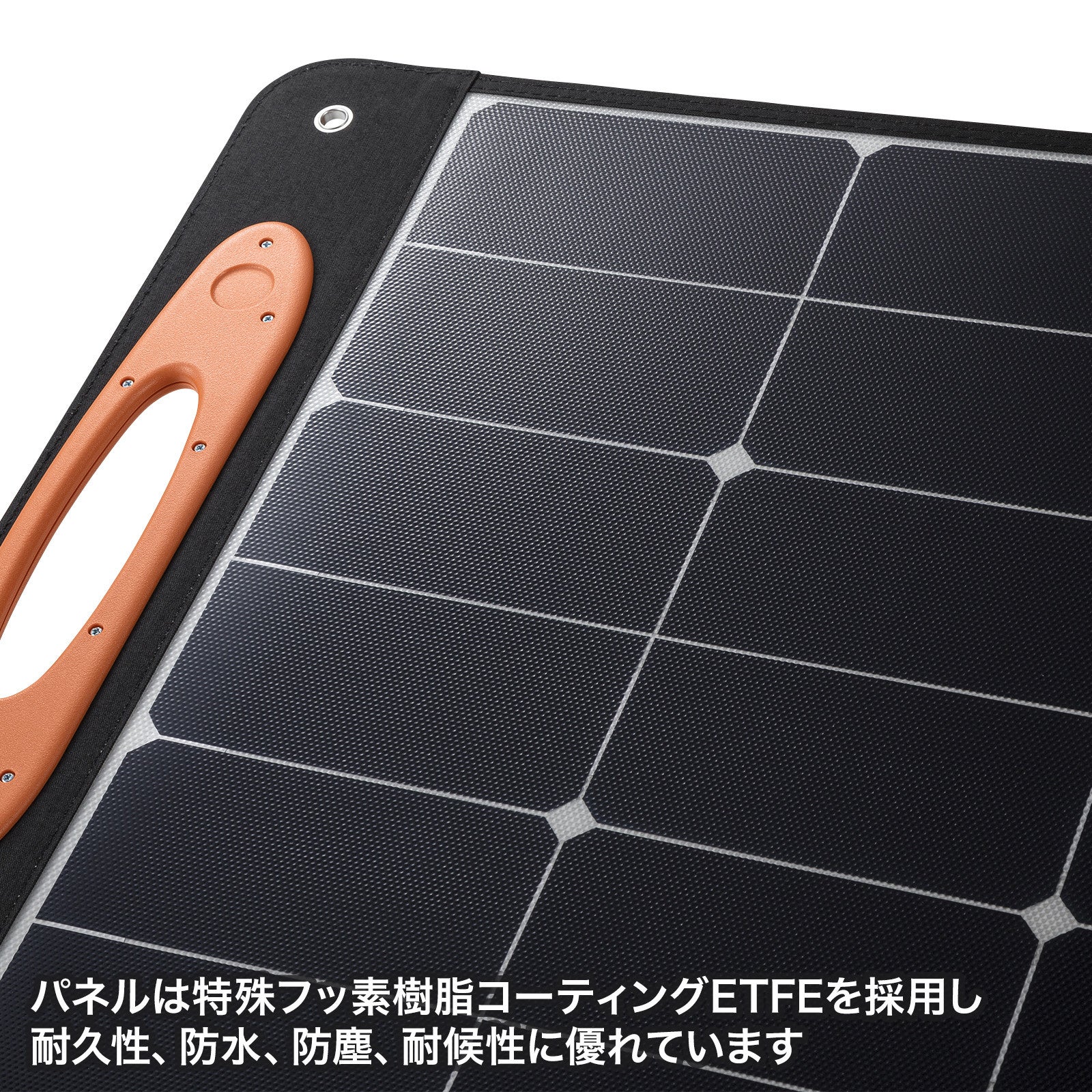 さらに、付属のソーラー充電ケーブルを使用することで、別売りのソーラーパネルからも蓄電が可能です。MPPT(最大電力点追従制御)機能が搭載されており、ソーラーパネルから最大の電力を取り出し効率的な蓄電ができます。
