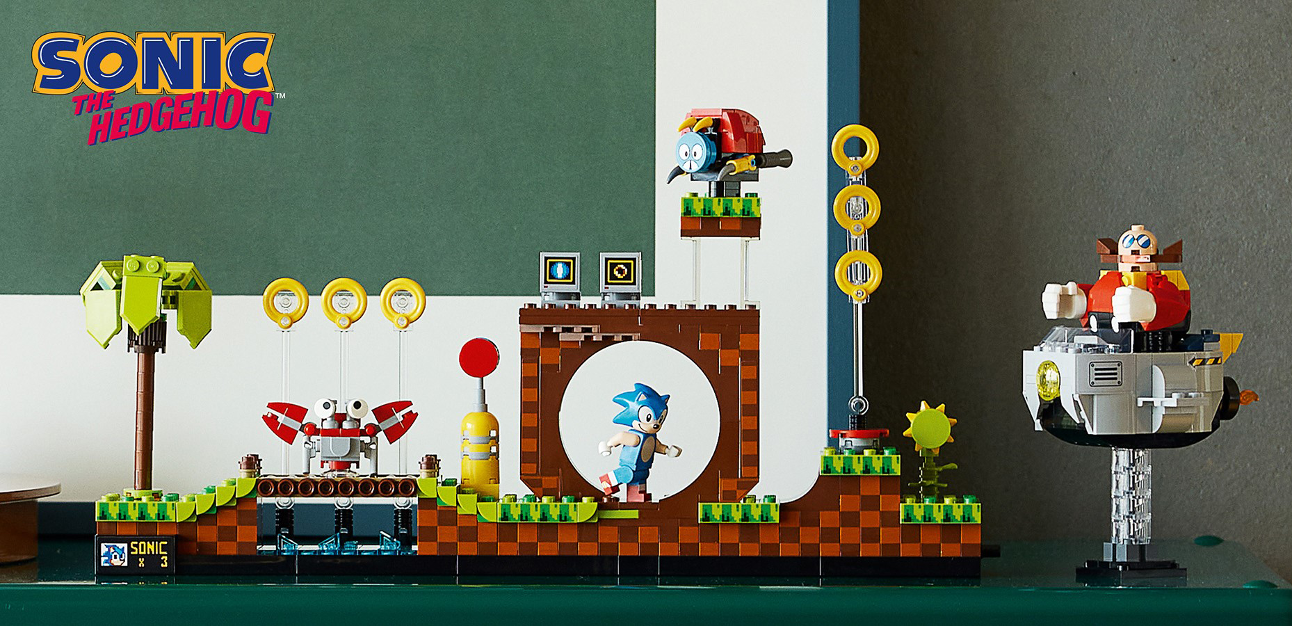 『ソニック・ザ・ヘッジホッグ』は、1991年にメガドライブ(北米では「Sega Genesis」)で世界中のゲーマーの前に登場し、全世界で400万本以上販売され、爆発的な人気となったゲームソフトです。ゲームの代表的なステージである「グリーンヒルゾーン」を高速で駆け抜け、リングを手に入れながらゴールを目指す高速アクションゲームで、これまで30年以上にわたり、様々なバージョンのグリーンヒルゾーンを再現してきました。そして今回、レゴでグリーンヒルゾーンを再現できるセットが登場します。