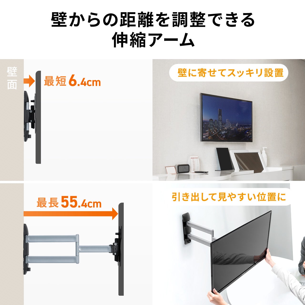 本製品は、最大43インチ、重さ30kgまで対応した壁掛けモニターアームです。