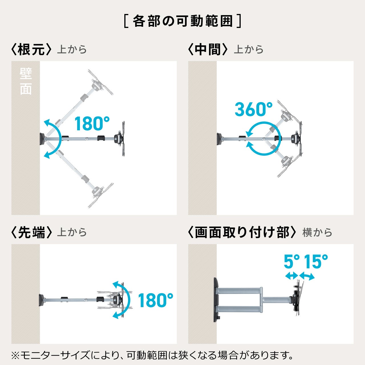 モニターアーム 壁面固定 ディスプレイアーム 壁掛け金具 耐荷重30kg 43インチ対応 3関節