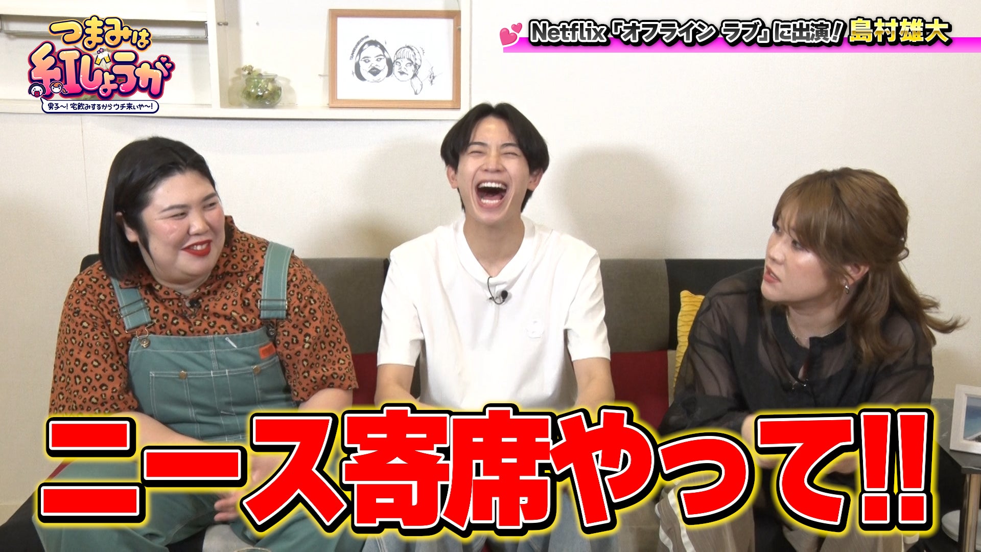 紅しょうがが、毎回、ステキな男子ゲストを招いて、“宅飲み”スタイルで食べて飲んで笑ってトークする『つまみは紅しょうが 男子~!宅飲みするからウチ来ぃや~』(毎月第3・4土曜23:30~)。今月から放送日が変わり、放送回数も増えてリニューアル! 7月19日(土)の放送回では、Netflixリアリティシリーズ『オフライン ラブ』から島村雄大がゲストにやってきます。