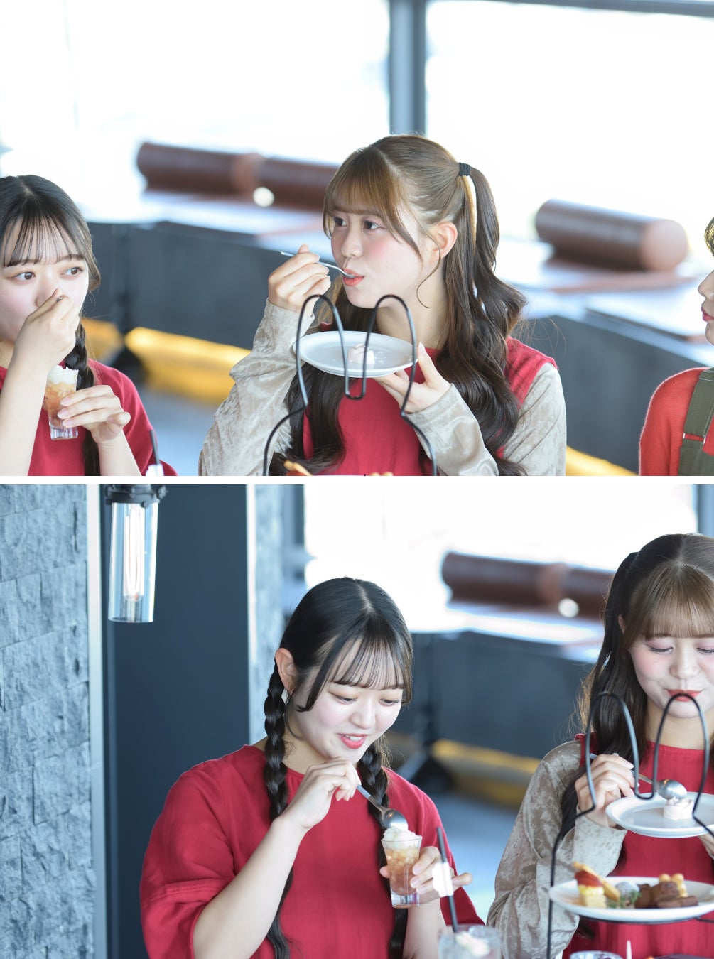 「うみとひかり」(青森県観光物産館アスパム 14F)にて、本イベントで提供されるコラボフードの中から、アフタヌーンティーをりんご娘さんが試食。青森県産のリンゴを使用したアップルパイや、Bean to Bar RAWチョコレートを使用したチョコレート菓子、春らしいいちごのチーズケーキ、りんごのジュレを楽しまれました。「とにかくかわいい!食べるのがもったいない」「おしゃれで写真を撮りたくなります!」と、まずは見た目のかわいさに歓声が上がりました。「りんごの甘さがやさしくてしあわせな味」「小さなお子さんから大人まで、みんなで楽しめそう」と試食したメニューの感想に会話が弾み、喜びいっぱいのご様子でした。