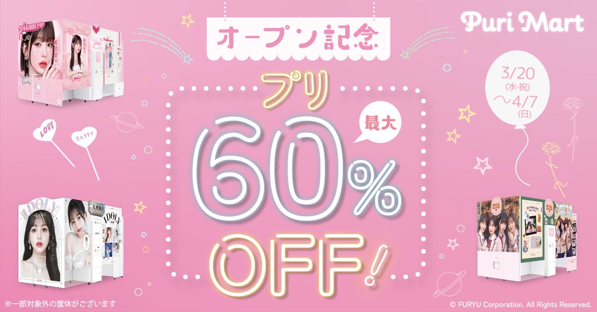 こちらは、期間中、対象のプリントシール機が最大60%も割引されるキャンペーンとなっております。