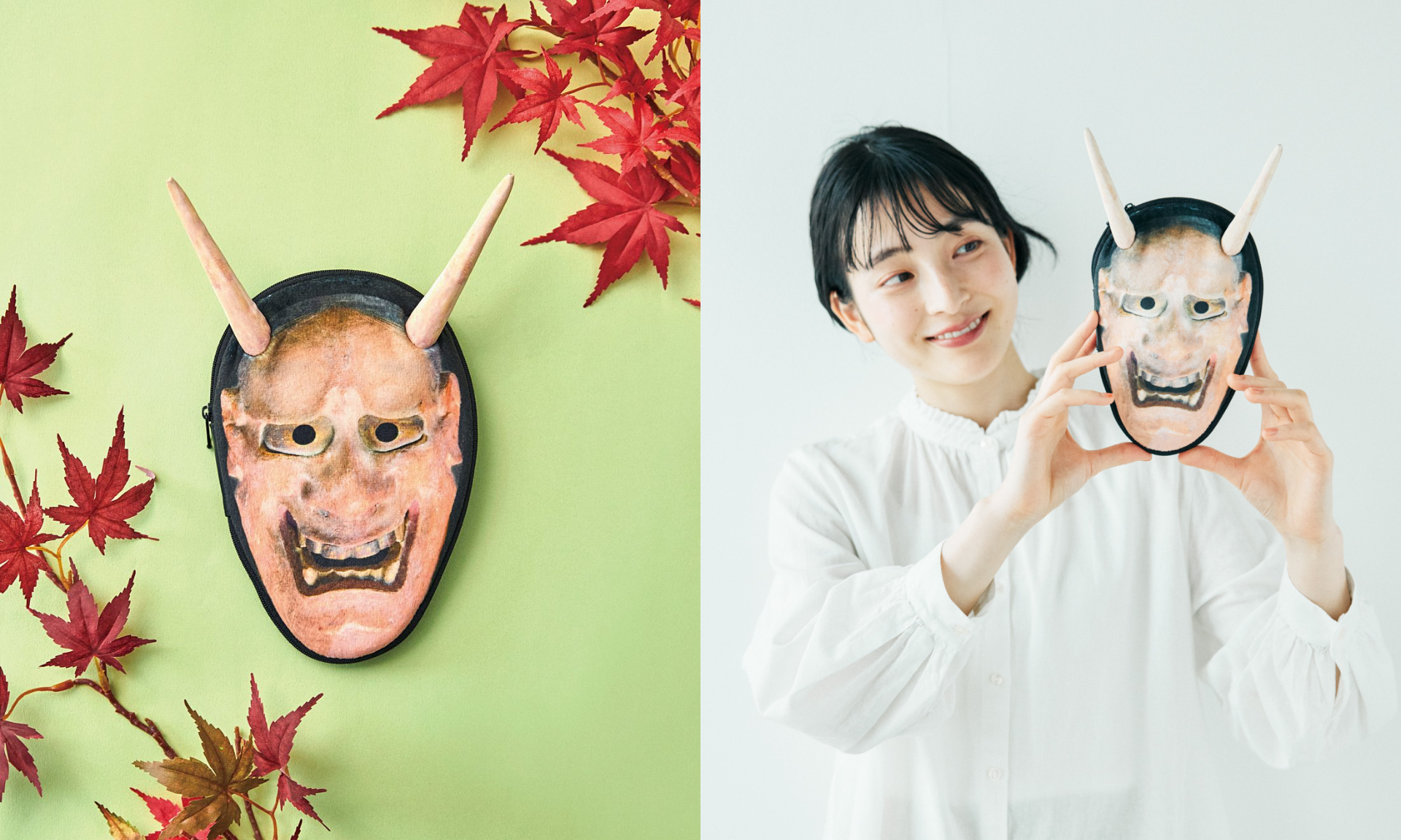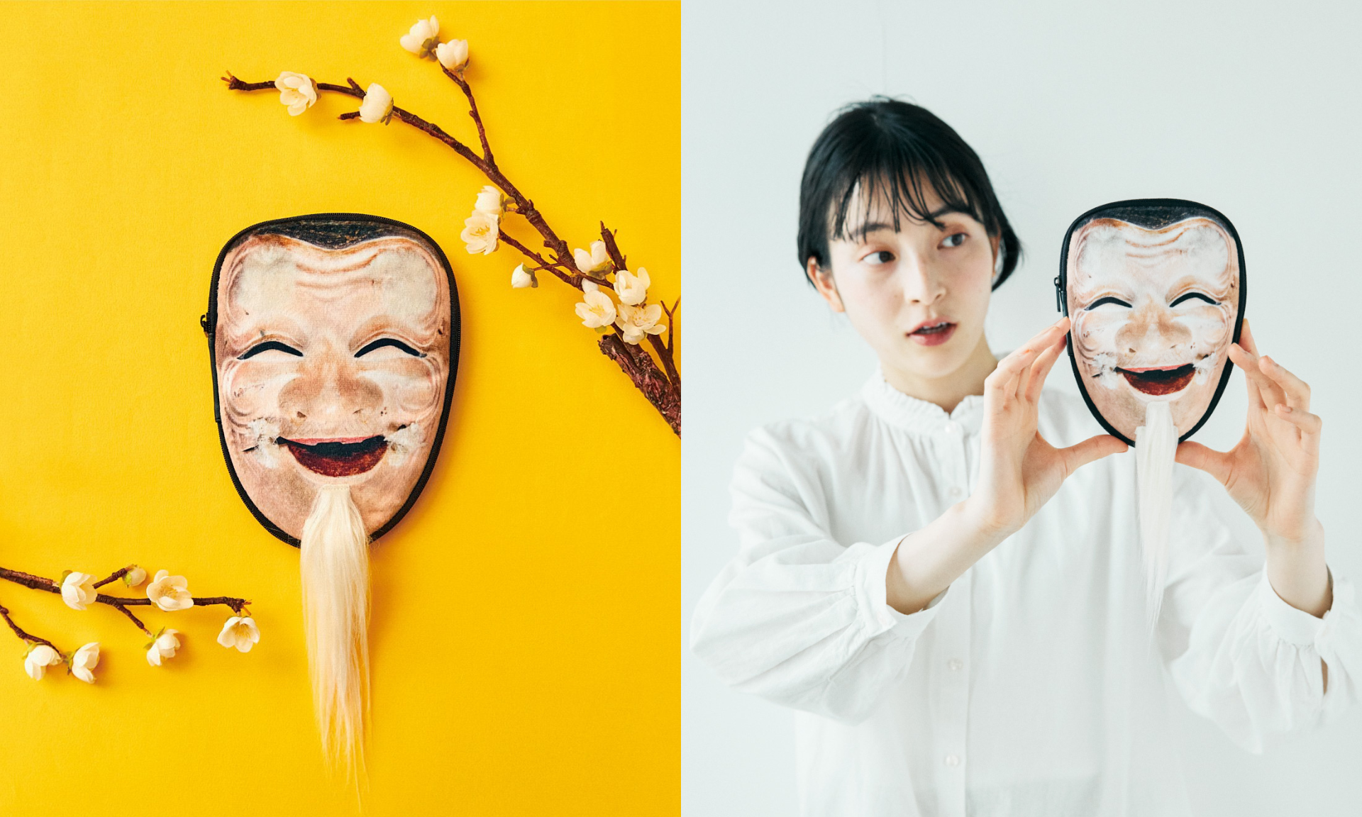 神秘的な「能」の世界を日常に。能面をモチーフにした「翁の面」と「般若の面」のマルチポーチがフェリシモ「ミュージアム部」から新登場