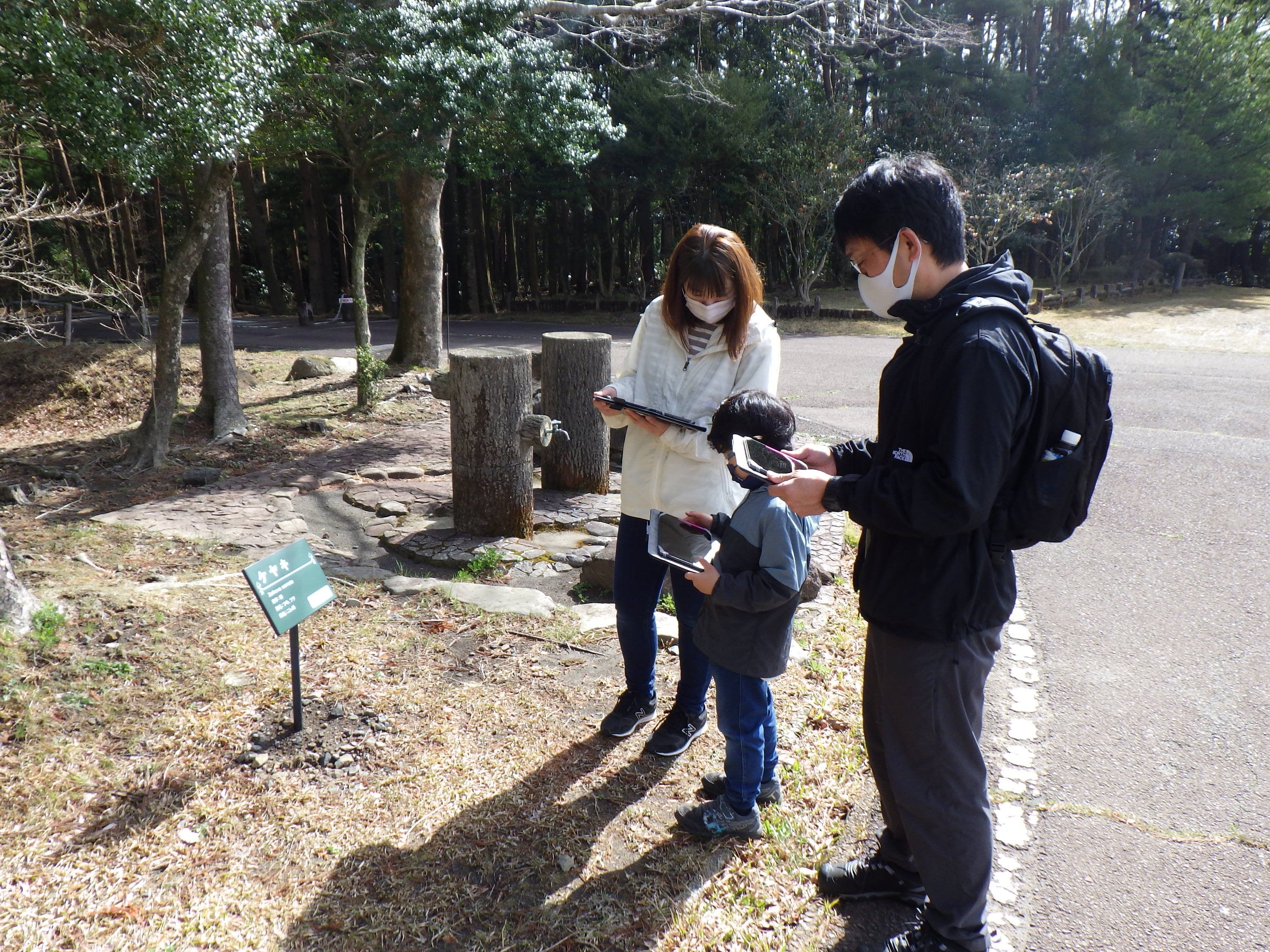 今回は、ひなもり台県民ふれあいの森専用ゲームアプリ「ひなもり物語」を使用し、木の精霊が出すクイズに答えながら森を巡り、森林環境について楽しく学びます。また霧島ジオパーク講師による講座を受講し、さらに理解を深め、木工教室では県産材に触れながら、貯金箱や本立てを作成いただけます。これら「学ぶ・歩く・作る」という3つの体験を通して、森林環境や樹木について学び、環境問題を考えるきっかけとしていただくことを目的としています。