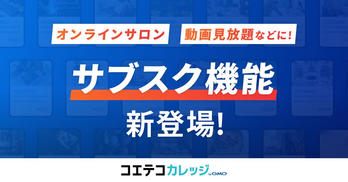 誰でもオンライン講座を作成できる「コエテコカレッジ byGMO」でサブスク機能の提供を開始【GMOメディア】
