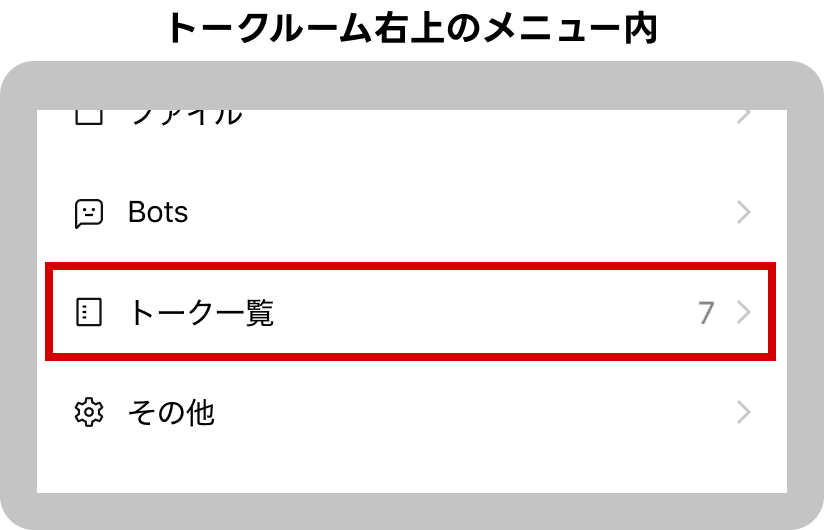 トークルーム画面右上の[≡]アイコンをタップ