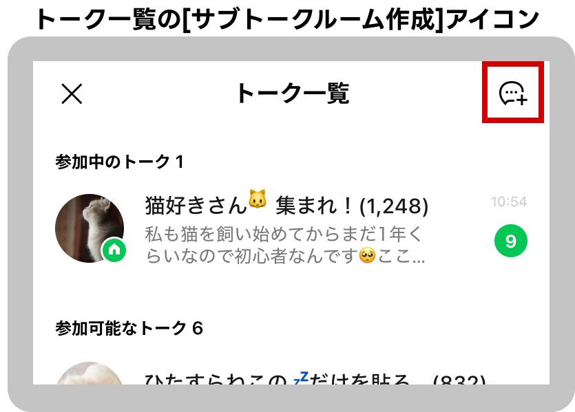 [トーク一覧]をタップ ※[トーク一覧]が表示されない場合、参加できるサブトークルームはありません