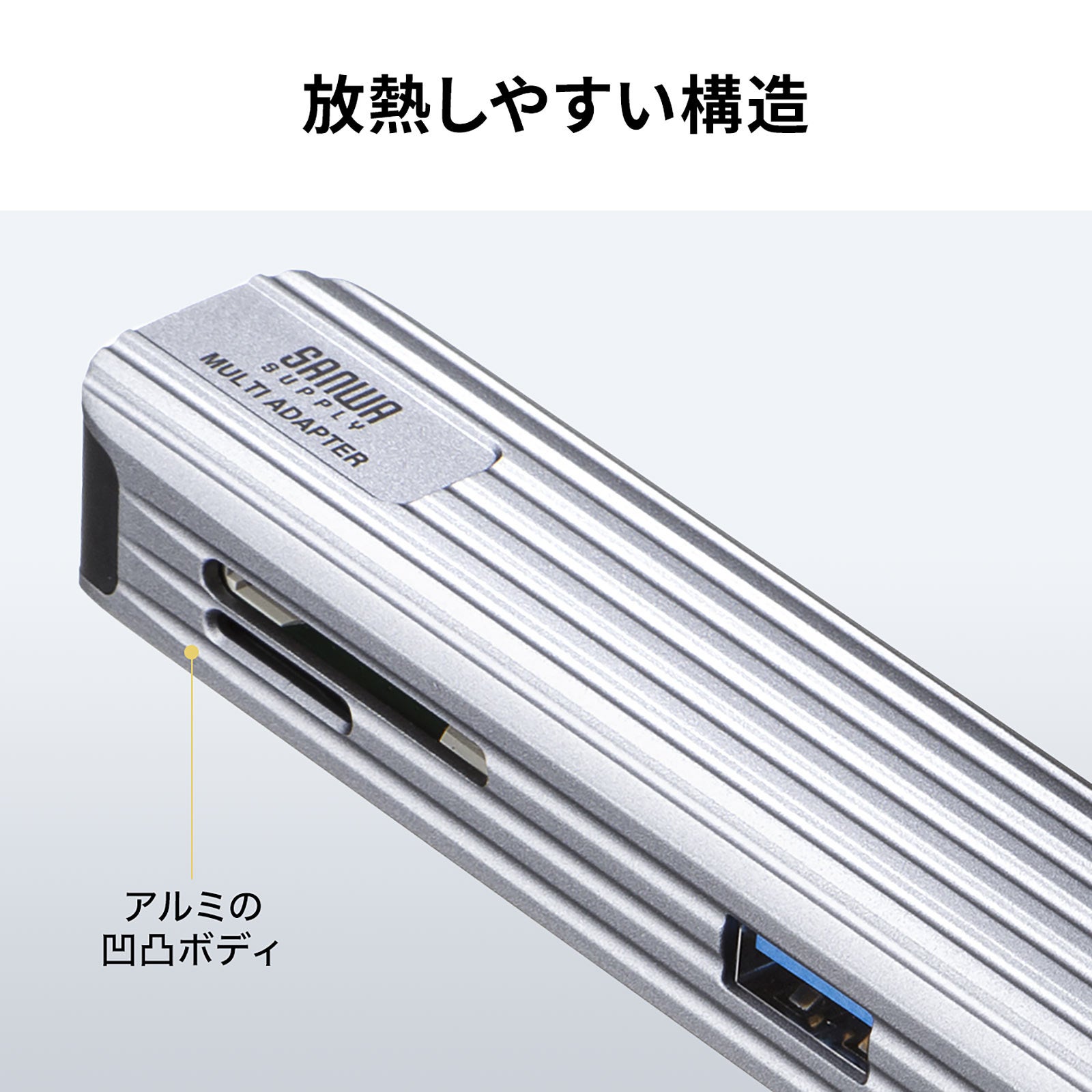 USBハブ HDMI出力対応 小型 ドッキングステーション カードリーダー アルミ素材 ケーブル長50cm