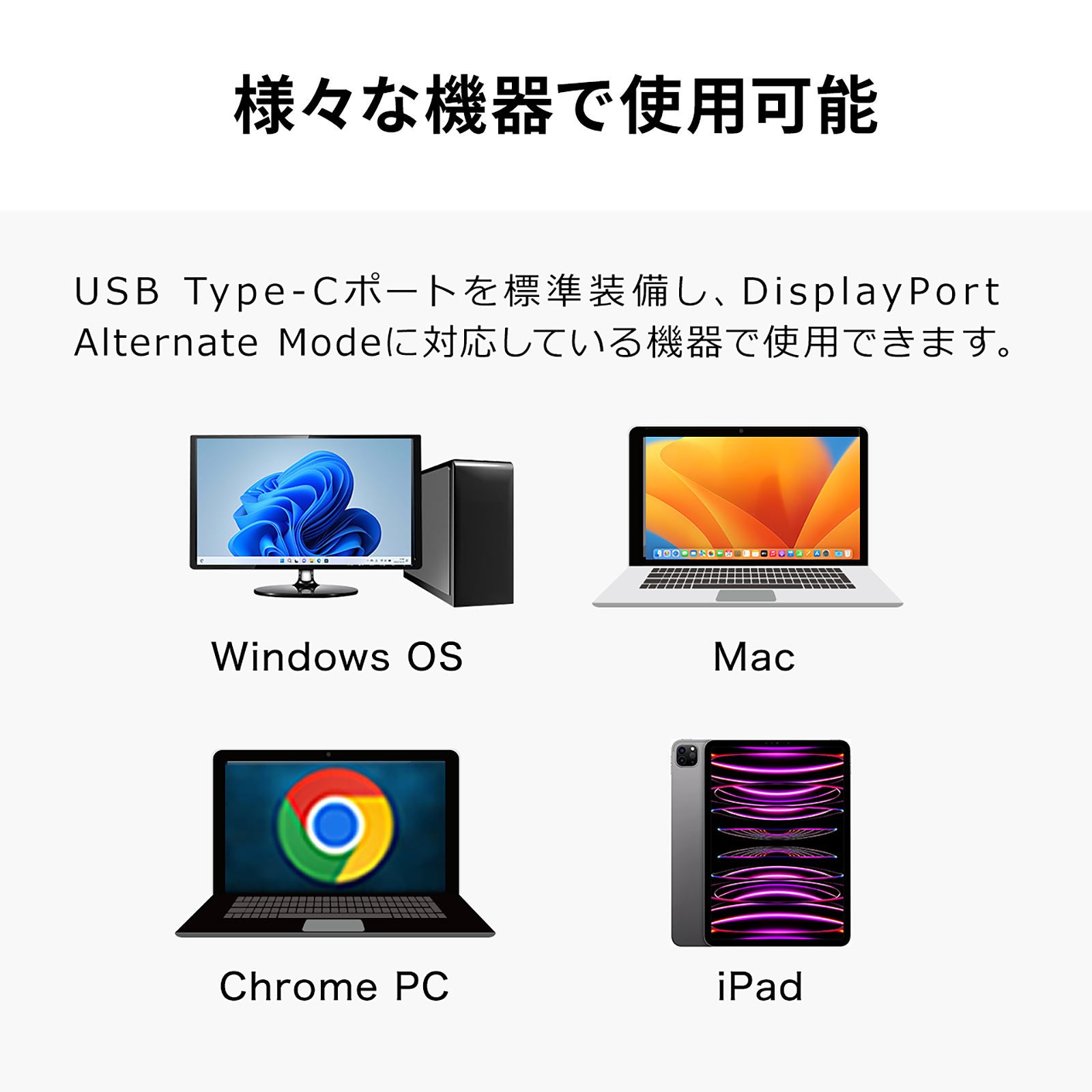 HDMI出力は、USB Type-CポートでのDisplayPort Alternate Modeに対応している機器でご使用いただけます。